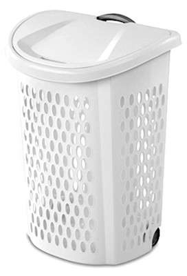 Sterilite Laundry Hamper Flip Top Lid Retractable Pull Handle Wheels