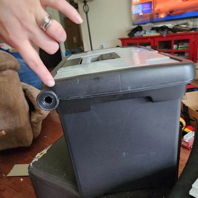 I bought this about a three weeks ago and in the first week of using it the cover fell off. It was easy to put back on but it still continues to fall off from the back hinge. It is missing the plugs that were supposed to be in it to keep this from happening. I have not put too much paperwork into yet but after looking at the other reviews I would expect for the handle or latch to break as well in the near future. I do not know how they can sell a defective item like they have been. Quality Control needs Quality Control to make sure these defective products don't leave the factory.