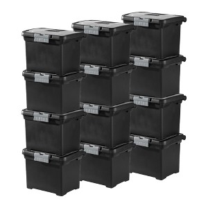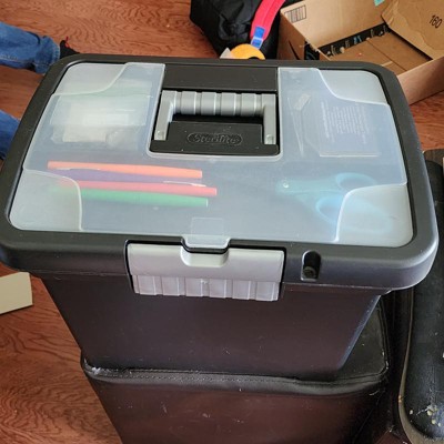 Features an easy-access, in-lid compartment, and divided sections that provide extra room for your pens, scissors, calculator, notepad, and other small things. The lid locks into place with the titanium gray latches, keeping everything sealed inside. Also, the clear lid makes it easy to check its contents without showing everyone what's inside. With a top handle design, you can easily transport and carry these boxes. Stackable, and allows for efficient use of vertical space thanks to indexed cover design.