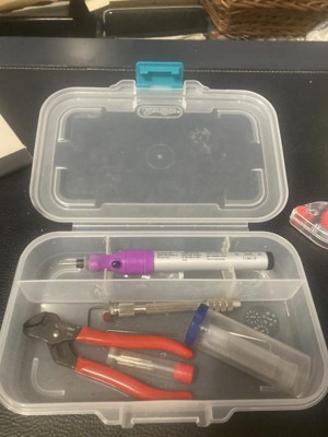 I cannot say enough about this little gem! Not only is it the perfect size for my micro engraver (and temporarily my hand drill and bits) it helps alleviate some of the stress that my ADHD tends to lay on all the little things all at once! My bigger issue is being unable to get my hands on a few more of them! My rechargeable engraver pen needs a new space (matching) in a less spacious box than it’s current one. lol I also have one smaller, about 1/2 size I need to replace but can’t locate them now either!! The hinge has gotten broken and even though the latch holds great, my tools keep tumbling out when I least expect it. I have lots of tiny little tools that could use their own cases…. The Dremel and flex work all my zillions of bits…?! Oh the humanity! lol Seriously though keeping tools together and protected extends their life incredibly. These are fantastic thank you for such all awesome line