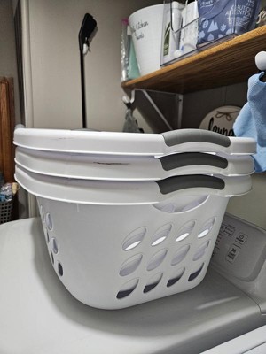 [This review was collected as part of a promotion.] I bought 3 of these probably 15 years ago and they still look new (aside from a few scuffs here and there). They are a great size for holding a load or 2 of laundry and the divit for your hip makes them super easy to carry (especially as a mom of 3 littles who's almost always holding one kid). They also stack nicely. The 3 handles give you multiple carry options and the kids also enjoy working together to carry the laundry with these baskets. They've also held up great to the kids using them as boats and whatever else they can think up. They're very sturdy, easy to clean and being sterlite I trust they'll last many more years