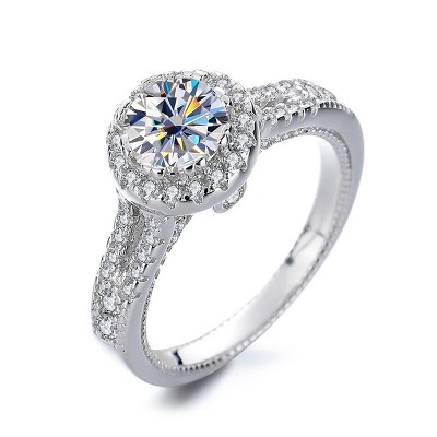- Brilliant Center Stone – Features a 1 carat round cut moissanite with diamond-like brilliance.