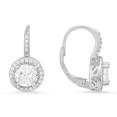 Product Name: Sterling Silver 3-Stone CZ Leverback Earrings