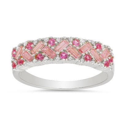 Product Name: Sterling Silver Abstract Pink Ombre Eternity Band Ring