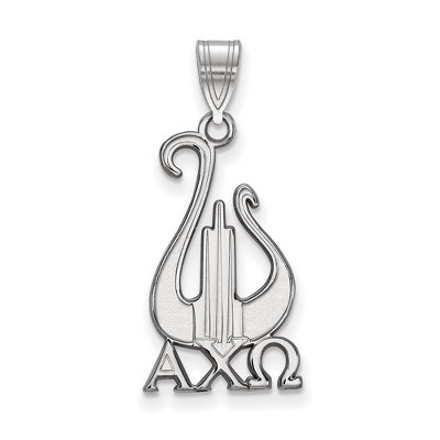 • Unique Features - Show your greek life spirit with this Alpha Chi Omega Sorority pendant. It is crafted with rhodium plated sterling silver and without the bail is 5mm in height and 16mm in width (0.2 in x 0.63 in). With the bail, the measurements are 10mm in height and 16mm in width. We are a certified Collegiate jewelry retailer and this authentic item is licensed by the Alpha Chi Omega Sorority and Greek Life. This pendant is made the USA. Chain not included.