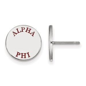 • Unique Features - Show your Greek life spirit with these Alpha Phi Sorority earrings. They are crafted from rhodium plated sterling silver and are 12 mm in length and 12 mm in width. We are a certified Collegiate jewelry retailer and this authentic item is licensed by the Alpha Phi Sorority and Greek Life. These enameled post earrings are made the USA.