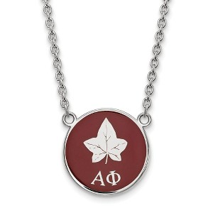 - Unique Features - Show your greek life spirit with this Alpha Phi Sorority necklace. It is crafted with rhodium plated sterling silver and is 18 Inches in length. The pendant is 18mm in width and 18mm in height (0.71 in x 0.71 in) and dangles from a 1.95mm wide cable chain. We are a certified Collegiate jewelry retailer and this authentic item is licensed by the Alpha Phi Sorority and Greek Life. This enameled pendant necklace is made the USA.