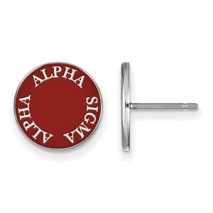 Show your Greek life spirit with these Alpha Sigma Alpha Sorority earrings. They are crafted from rhodium plated sterling silver and are 12 mm in length and 12 mm in width. We are a certified Collegiate jewelry retailer and this authentic item is licensed by the Alpha Sigma Alpha Sorority and Greek Life. These enameled post earrings are made the USA. Additional features include: crafted with rhodium plated sterling silver; authentic and made in the usa; 12mm in length and 12mm in width; licensed by greek life and the alpha sigma alpha sorority.