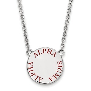 - Unique Features - Show your greek life spirit with this Alpha Sigma Alpha Sorority necklace. It is crafted with rhodium plated sterling silver and is 18 Inches in length. The pendant is 19mm in width and 19mm in height (0.75 in x 0.75 in) and dangles from a 1.95mm wide cable chain. We are a certified Collegiate jewelry retailer and this authentic item is licensed by the Alpha Sigma Alpha Sorority and Greek Life. This enameled pendant necklace is made the USA.