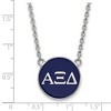- Unique Features - Show your greek life spirit with this Alpha Xi Delta Sorority necklace. It is crafted with rhodium plated sterling silver and is 18 Inches in length. The pendant is 19mm in width and 19mm in height (0.75 in x 0.75 in) and dangles from a 1.95mm wide cable chain. We are a certified Collegiate jewelry retailer and this authentic item is licensed by the Alpha Xi Delta Sorority and Greek Life. This enameled pendant necklace is made the USA.