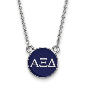 - Unique Features - Show your greek life spirit with this Alpha Xi Delta Sorority necklace. It is crafted with rhodium plated sterling silver and is 18 Inches in length. The pendant is 12mm in width and 12mm in height (0.47 in x 0.47 in) and dangles from a 1.25mm wide cable chain. We are a certified Collegiate jewelry retailer and this authentic item is licensed by the Alpha Xi Delta Sorority and Greek Life. This enameled pendant necklace is made the USA.