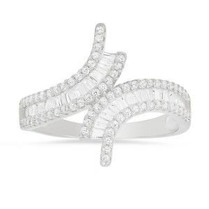 Product Name: Sterling Silver Baguette-cut CZ Bypass Statement Ring
