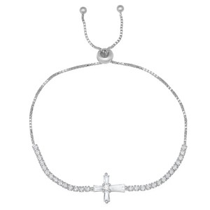 Product Name: Sterling Silver Baguette CZ Cross Adjustable Bracelet