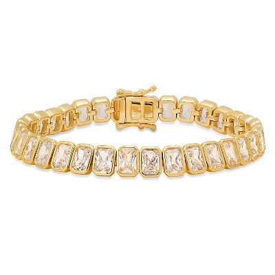 Product Name: Sterling Silver Bezel Emerald-cut CZ Tennis Bracelet