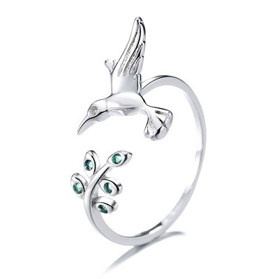 Amy and Annette Sterling Silver Bird Bypass Ring with Crystals