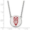 Show your greek life spirit with this Chi Omega Sorority necklace. It is crafted with rhodium plated sterling silver and is 18 Inches in length. The pendant is 19mm in width and 19mm in height (0.75 in x 0.75 in) and dangles from a 1.95mm wide cable chain. We are a certified Collegiate jewelry retailer and this authentic item is licensed by the Chi Omega Sorority and Greek Life. This enameled pendant necklace is made the USA. Additional features include: crafted with rhodium plated sterling silver; authentic and made in the usa; 18 inches in length; licensed by greek life and the chi omega sorority.