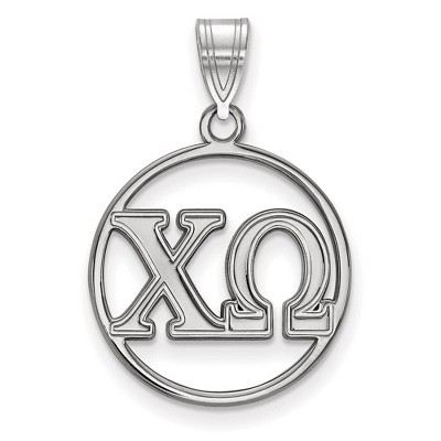 Show your greek life spirit with this Chi Omega Sorority pendant. It is crafted with rhodium plated sterling silver and without the bail is 17mm in height and 9mm in width (0.67 in x 0.35 in). With the bail, the measurements are 22mm in height and 9mm in width. We are a certified Collegiate jewelry retailer and this authentic item is licensed by the Chi Omega Sorority and Greek Life. This pendant is made the USA. Chain not included. Additional features include: crafted with rhodium plated sterling silver; authentic and made in the usa; pendant is 22mm in height and 9mm in width (0.87 in x 0.35 in); licensed by greek life and the chi omega sorority.