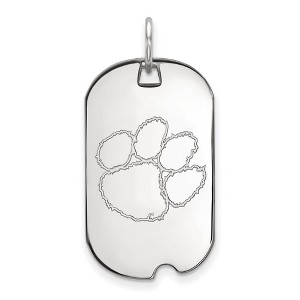 If you are a fan of Clemson University and the Tigers then you need to show your school spirit with this Clemson University pendant. We are a certified retailer and this authentic item is officially licensed. It is crafted from Sterling Silver and crafted in the USA. It is approximately 18mm (11/16 inch) in width by 30mm (1 3/16 inch) in length. The total length with the jump ring or bail is 36mm (1 3/8 inch). Additional features include: crafted from sterling silver; authentic and made in the usa; perfect for every tigers fan; officially licensed for clemson university.