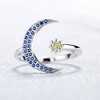 Sterling Silver Crescent Moon Bypass Ring with Crystals