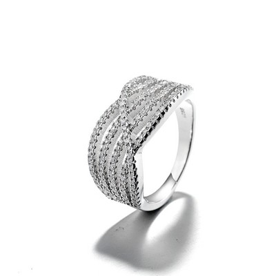 Amy and Annette Sterling Silver Crystal Cross Over Ring
