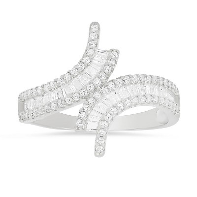 Sterling Silver CZ Baguette-cut Sprial Crossover Ring