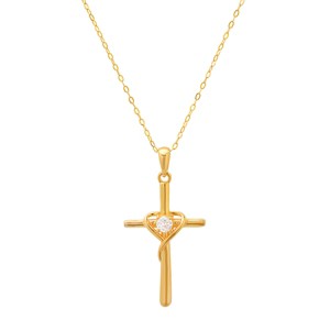 Product Name: Sterling Silver CZ Cross Heart Pendant
