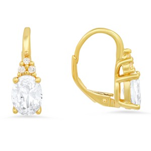 Sterling Silver Oval-cut CZ Leverback Earrings
