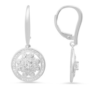Product Name: Sterling Silver Dangling CZ Flower Leverback Earrings