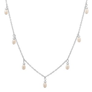 Product Name: Sterling Silver Dangling Pearl Charm Choker Necklace