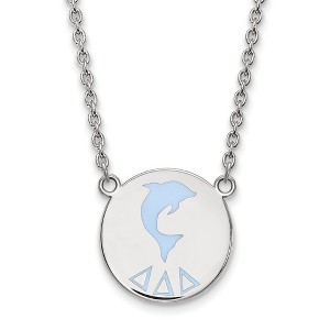 - Unique Features - Show your greek life spirit with this Delta Delta Delta Sorority necklace. It is crafted with rhodium plated sterling silver and is 18 Inches in length. The pendant is 19mm in width and 19mm in height (0.75 in x 0.75 in) and dangles from a 1.95mm wide cable chain. We are a certified Collegiate jewelry retailer and this authentic item is licensed by the Delta Delta Delta Sorority and Greek Life. This enameled pendant necklace is made the USA.