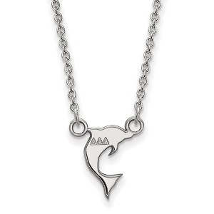 - Unique Features - Show your greek life spirit with this Delta Delta Delta Sorority necklace. It is crafted with rhodium plated sterling silver and is 18 Inches in length. The pendant is 13mm in width and 10mm in height (0.51 in x 0.39 in) and dangles from a 1.25mm wide cable chain. We are a certified Collegiate jewelry retailer and this authentic item is licensed by the Delta Delta Delta Sorority and Greek Life. This pendant necklace is made the USA.