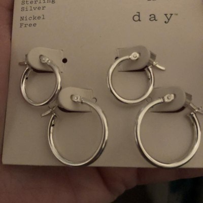 Sterling Silver Duo Click In Hoop Earring Set - Silver: Tarnish-Resistant, Nickel-Free, Shiny, Polished, Smooth Finish