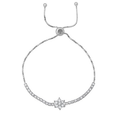 Sterling Silver Floral CZ Adjustable Bracelet