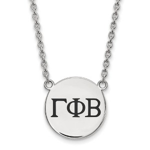- Unique Features - Show your greek life spirit with this Gamma Phi Beta Sorority necklace. It is crafted with rhodium plated sterling silver and is 18 Inches in length. The pendant is 19mm in width and 19mm in height (0.75 in x 0.75 in) and dangles from a 1.95mm wide cable chain. We are a certified Collegiate jewelry retailer and this authentic item is licensed by the Gamma Phi Beta Sorority and Greek Life. This enameled pendant necklace is made the USA.