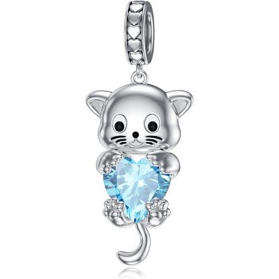 Sterling Silver Heart Birthstone Charms - Customizable Beads for Bracelets & Necklaces, Gift for Women Dangle - Mar - Aquamarine
