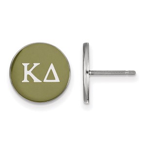Show your Greek life spirit with these Kappa Delta Sorority earrings. They are crafted from rhodium plated sterling silver and are 12 mm in length and 12 mm in width. We are a certified Collegiate jewelry retailer and this authentic item is licensed by the Kappa Delta Sorority and Greek Life. These enameled post earrings are made the USA. Additional features include: crafted with rhodium plated sterling silver; authentic and made in the usa; 12mm in length and 12mm in width; licensed by greek life and the kappa delta sorority.