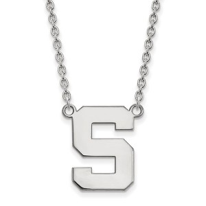 - Unique Features - If you are a fan of Michigan State University and the Spartans then you need to show your school spirit with this Michigan State University necklace. We are a certified retailer and this authentic item is officially licensed. It is crafted from Sterling Silver and crafted in the USA. 18 inches in length.