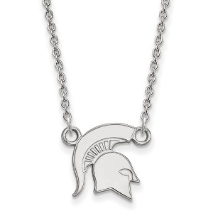 - Unique Features - If you are a fan of Michigan State University and the Spartans then you need to show your school spirit with this Michigan State University necklace. We are a certified retailer and this authentic item is officially licensed. It is crafted from Sterling Silver and crafted in the USA. 18 inches in length.