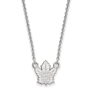 - Unique Features - It is time to celebrate your favorite team, the Toronto Maple Leafs! This NHL necklace created from rhodium-plated sterling silver is crafted in the USA. We are a certified retailer and this authentic item is officially licensed by the Toronto Maple Leafs. The pendant is approximately 11mm (7/16 inch) in width and the cable chain is 1.25mm in width by 18-inches in length.