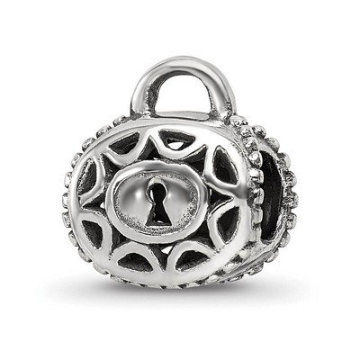 Sterling Silver Bracelet Charm: Hand-finished in sterling silver in an intricate cut out pattern, the charm features padlock motifs inspired by love locks on bridges around the world