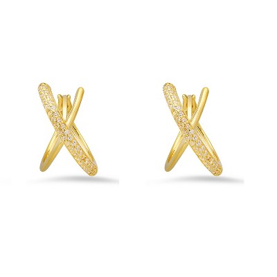 Sterling Silver Pave CZ "X" Hoop Earrings