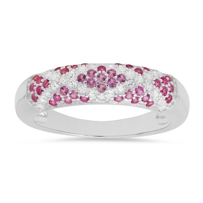 Sterling Silver Pave Pink Sapphire CZ 'X' Band Ring