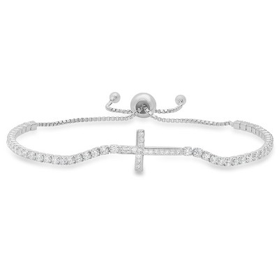 Product Name: Sterling Silver Petite CZ Cross Adjustable Bracelet