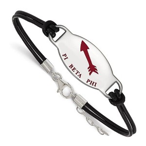 Black Bow Jewelry Greek Life Sterling Silver Pi Beta Phi Enamel Black Leather Bracelet - 7 in. - 1 of 4