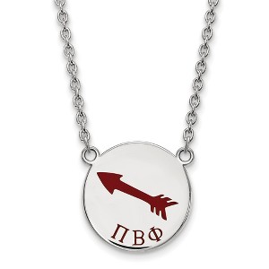 - Unique Features - Show your greek life spirit with this Pi Beta Phi Sorority necklace. It is crafted with rhodium plated sterling silver and is 18 Inches in length. The pendant is 19mm in width and 19mm in height (0.75 in x 0.75 in) and dangles from a 1.95mm wide cable chain. We are a certified Collegiate jewelry retailer and this authentic item is licensed by the Pi Beta Phi Sorority and Greek Life. This enameled pendant necklace is made the USA.