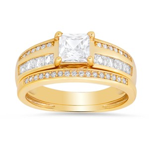 Product Name: Sterling Silver Princess-cut CZ 2pc Stackable Ring Set