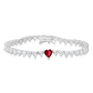 Product Name: Sterling Silver Ruby CZ Heart-cut CZ Tennis Bracelet