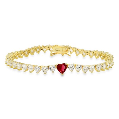 Product Name: Sterling Silver Ruby CZ Heart-cut CZ Tennis Bracelet