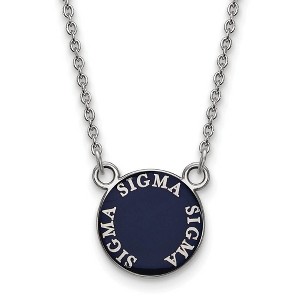 - Unique Features - Show your greek life spirit with this Sigma Sigma Sigma Sorority necklace. It is crafted with rhodium plated sterling silver and is 18 Inches in length. The pendant is 12mm in width and 12mm in height (0.47 in x 0.47 in) and dangles from a 1.25mm wide cable chain. We are a certified Collegiate jewelry retailer and this authentic item is licensed by the Sigma Sigma Sigma Sorority and Greek Life. This enameled pendant necklace is made the USA.