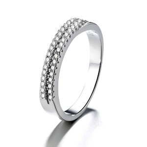 The Sterling Silver Two-Row Band with Crystals is a beautiful and sophisticated piece of jewelry that combines the beauty of sparkling crystals with the luster of sterling silver. The ring features two rows of crystals that run parallel to each other, creating a stunning and eye-catching design.